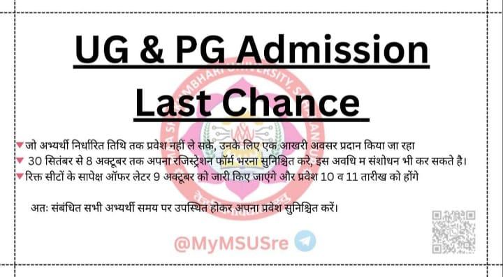 UG & PG Admission Last Chance ЁЯФ╗ рдЬреЛ рдЕрднреНрдпрд░реНрдереА рдирд┐рд░реНрдзрд╛рд░рд┐рдд рддрд┐рдерд┐ рддрдХ рдкреНрд░рд╡реЗрд╢ рдирд╣реАрдВ рд▓реЗ рд╕рдХреЗ, рдЙрдирдХреЗ рд▓рд┐рдП рдПрдХ рдЖрдЦрд┐рд░реА рдЕрд╡рд╕рд░ рдкреНрд░рджрд╛рди рдХрд┐рдпрд╛ рдЬрд╛ рд░рд╣рд╛ред